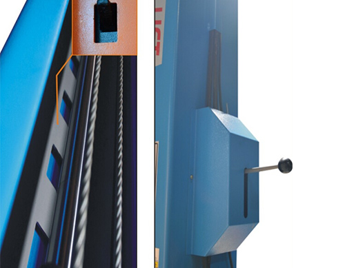 ◆Driven by double hydraulic cylinders, steel wire chain-type elevating system
